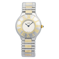 Cartier Must De 21 9010 W1000944 SS Gold Plated White Dial Quartz Ladies 31mm Sale