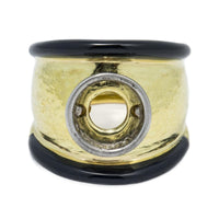 David Webb 18k Yellow Gold & Platinum Black Enamel Ring Setting 20 Grams Size 6 Sale