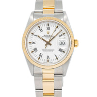 Rolex Date 15223 Oyster 18K YG Two Tone White Dial Auto Men's Watch 34mm Sale