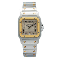 Cartier Santos Galbee W20011CY 18K YG Steel Roman Dial Date Quartz Watch 29mm Sale