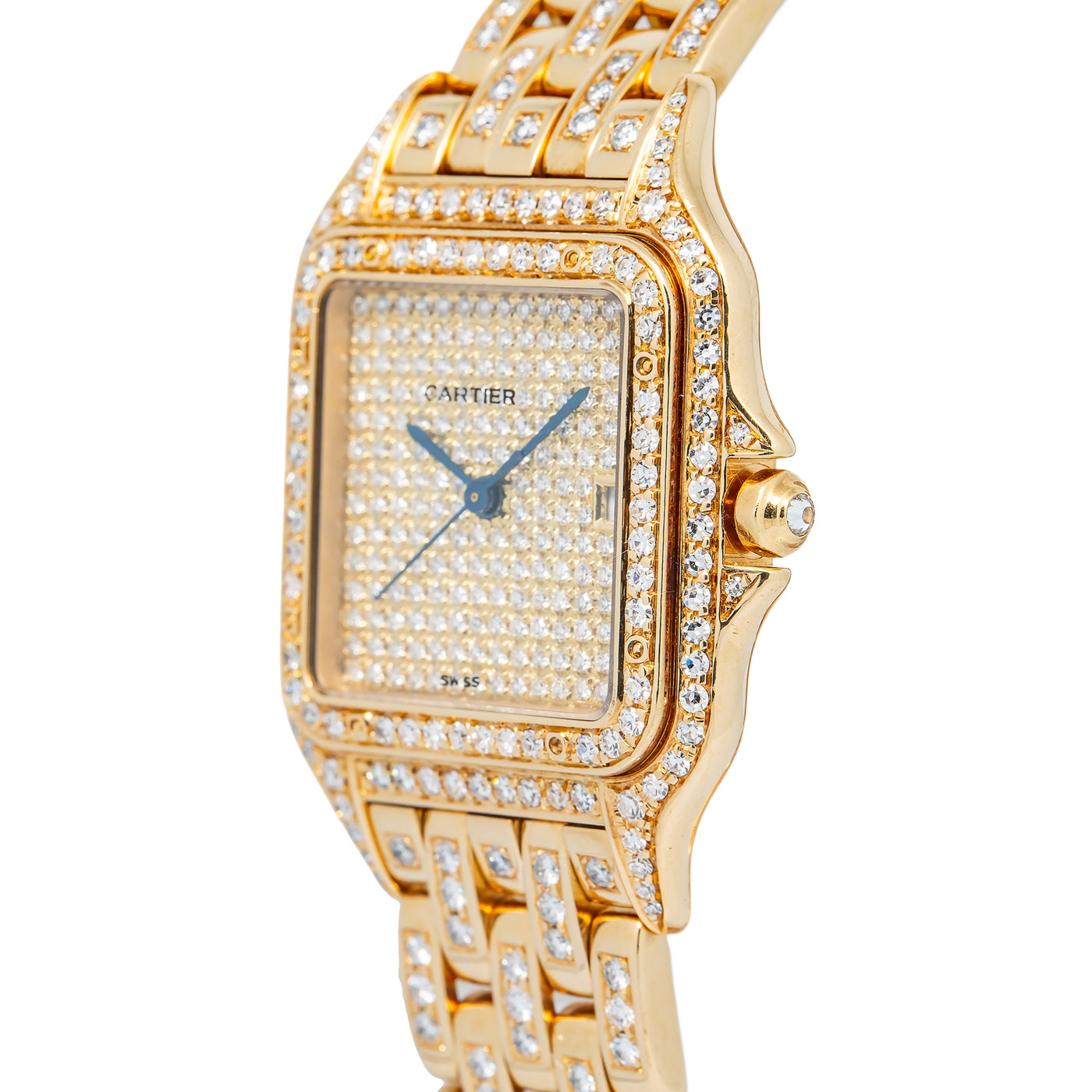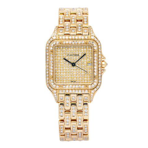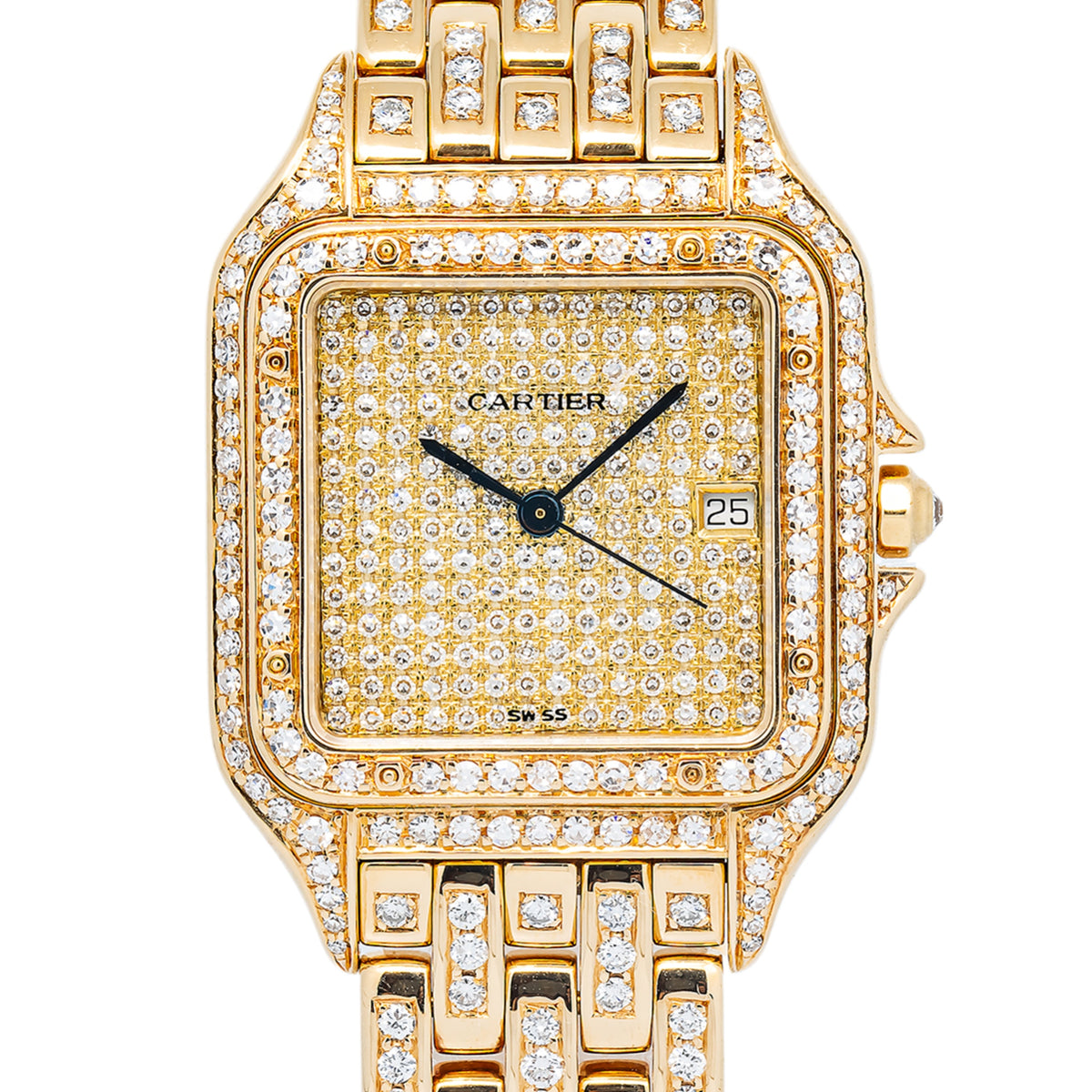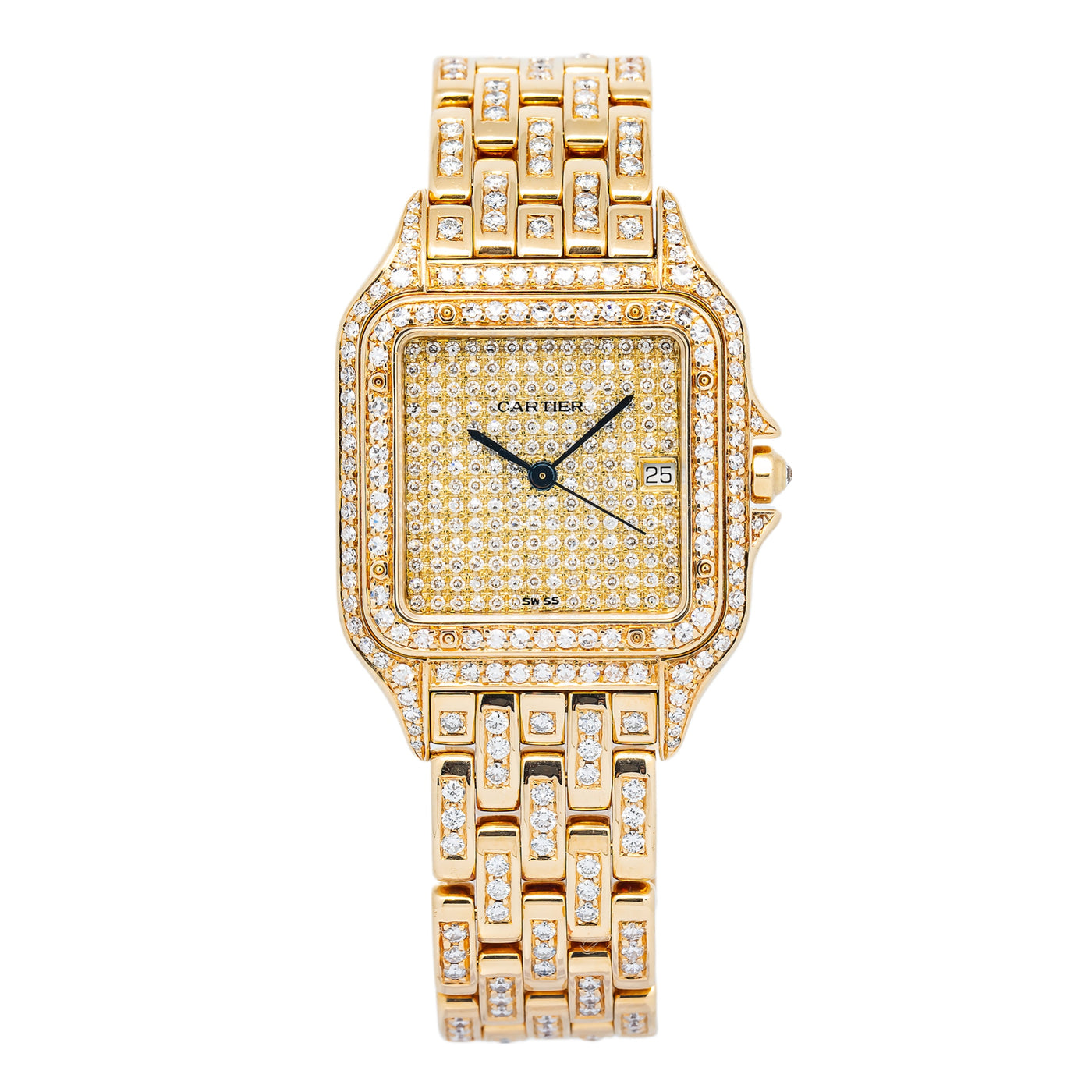 Cartier Panthere 883969 18k YG Aftermarket Pave Diamond Dial Quartz Unisex 29mm Sale