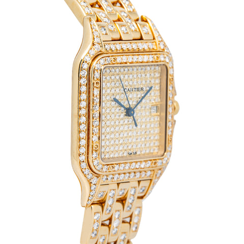 Cartier Panthere 883969 18k YG Aftermarket Pave Diamond Dial Quartz Unisex 29mm