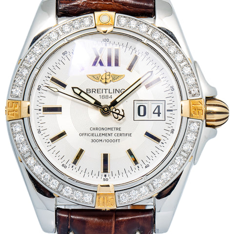 Breitling Cockpit B49350 Automatic SS Diamond Bezel Silver Dial Men's Watch 41mm