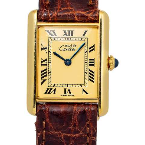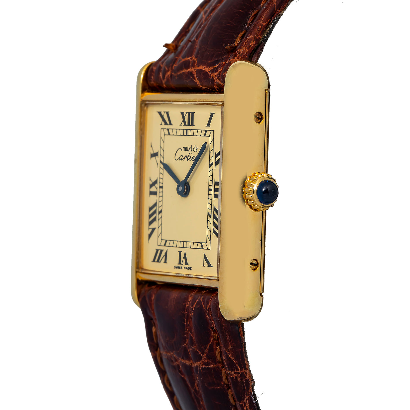 Cartier Tank Vermeil 60029 w/Paper Vermeil Ivory Dial Manual Unisex Watch 24mm Sale