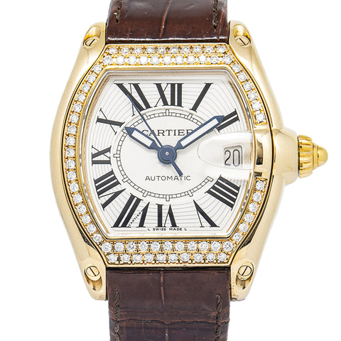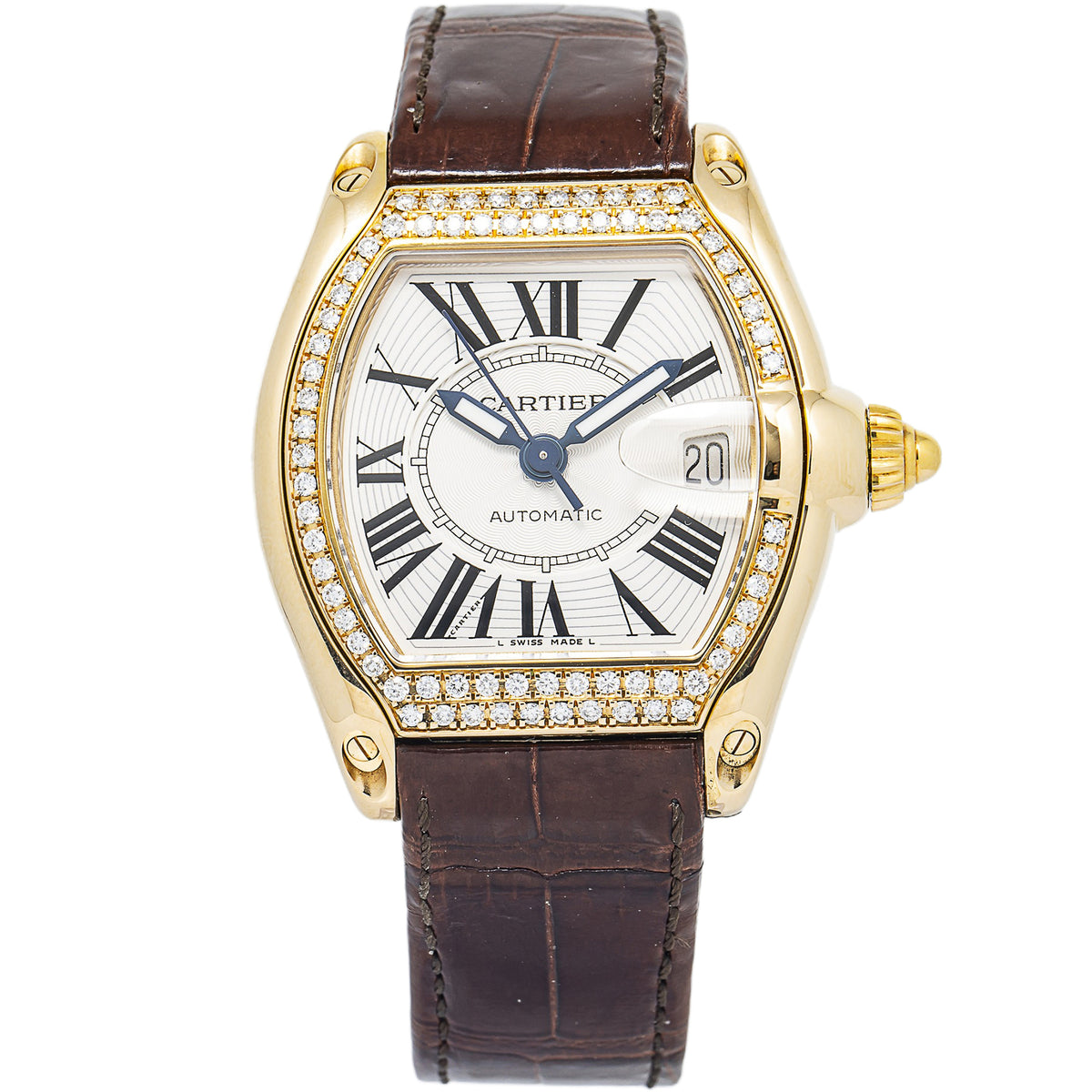Cartier Roadster 2524 W62005V2 18K YG Diamond Bezel Silver Dial Auto Men's 37mm Sale