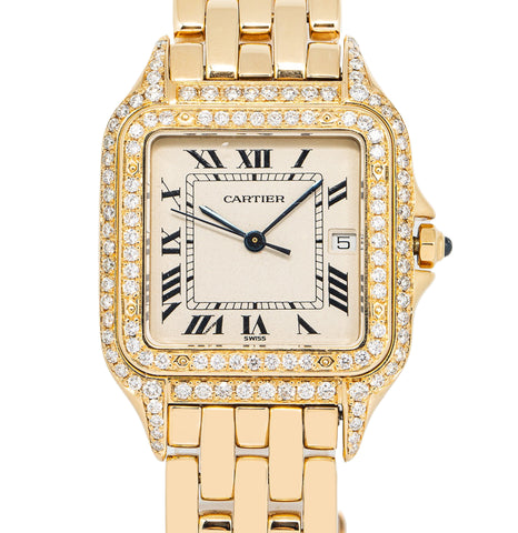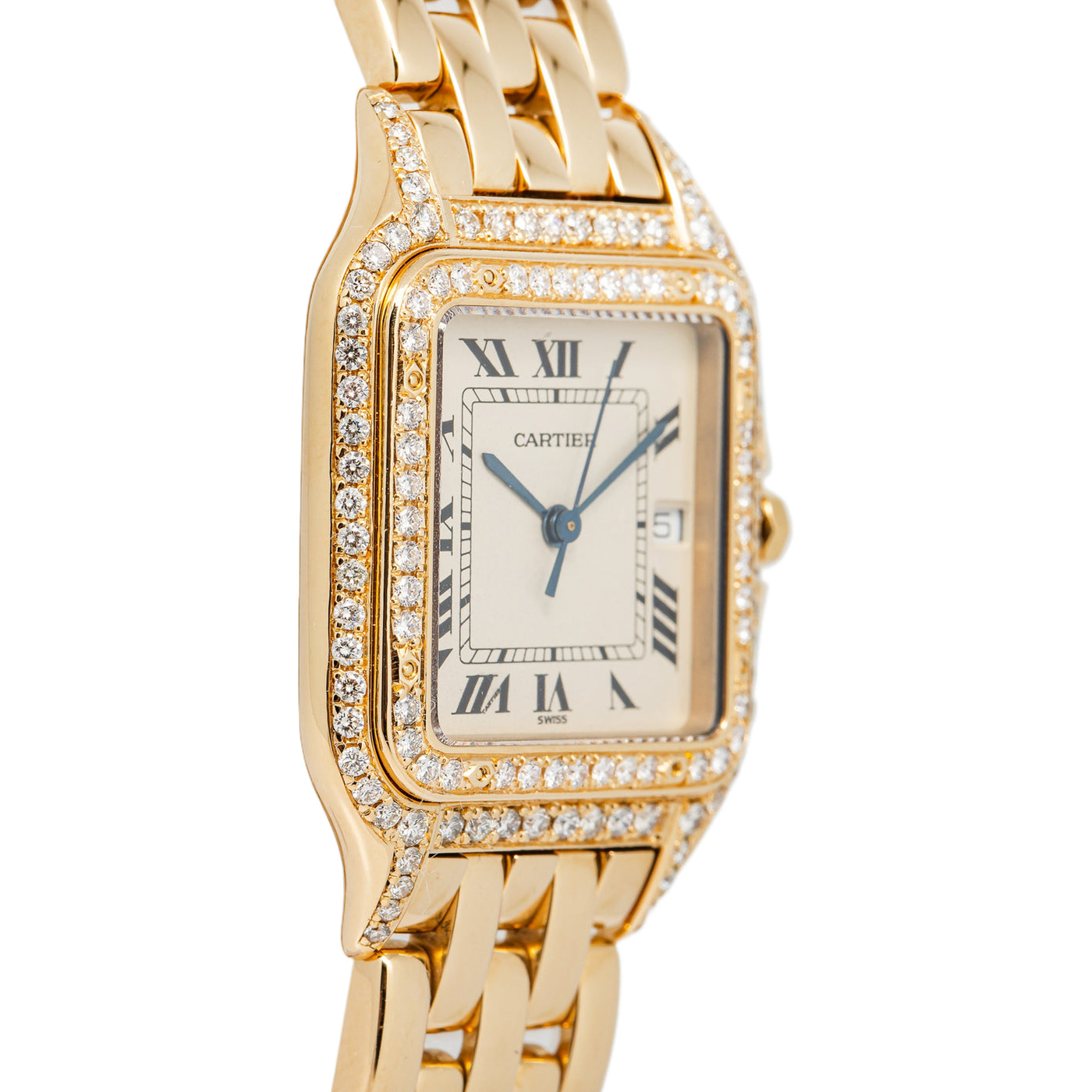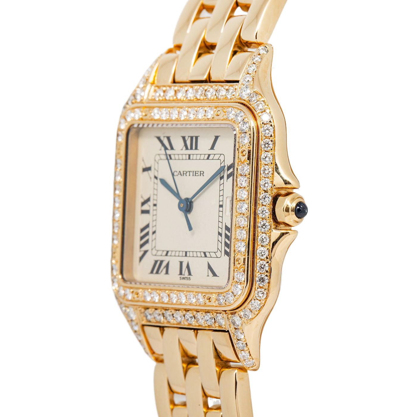 Cartier Panthere 18k Yellow Gold White Dial Diamond Quartz Ladies Watch 27mm