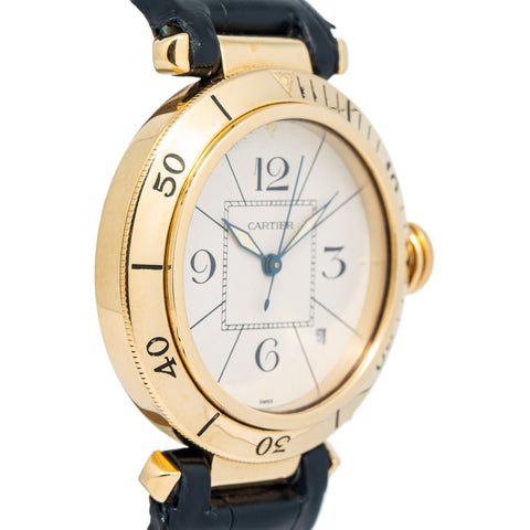 Cartier Pasha 820907 18k Yellow Gold Automatic White Dial Men's Watch 38mm