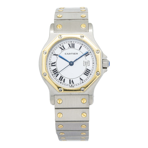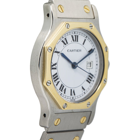 Cartier Santos Octagon 18K TwoTone YG White Dial Automatic Unisex Watch 29mm