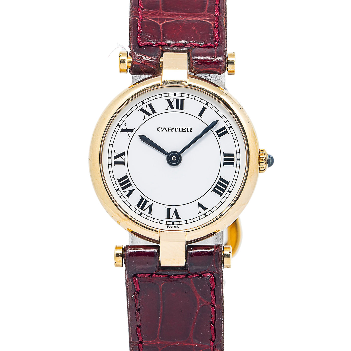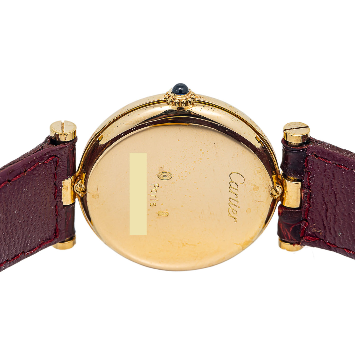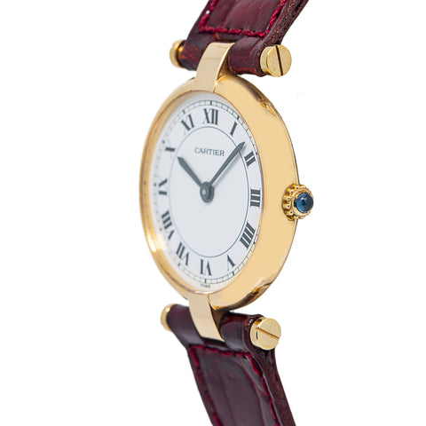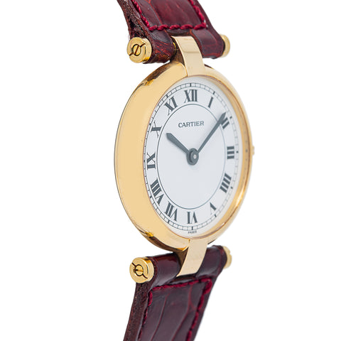 Cartier Vendome 81002 18K YG Bezel Burgundy Leather Strap Quartz Lady Watch 24mm Sale