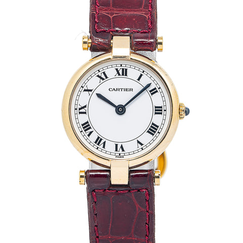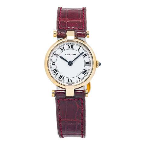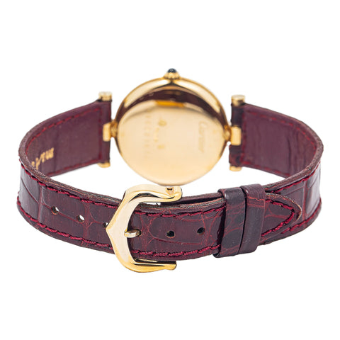 Cartier Vendome 81002 18K YG Bezel Burgundy Leather Strap Quartz Lady Watch 24mm