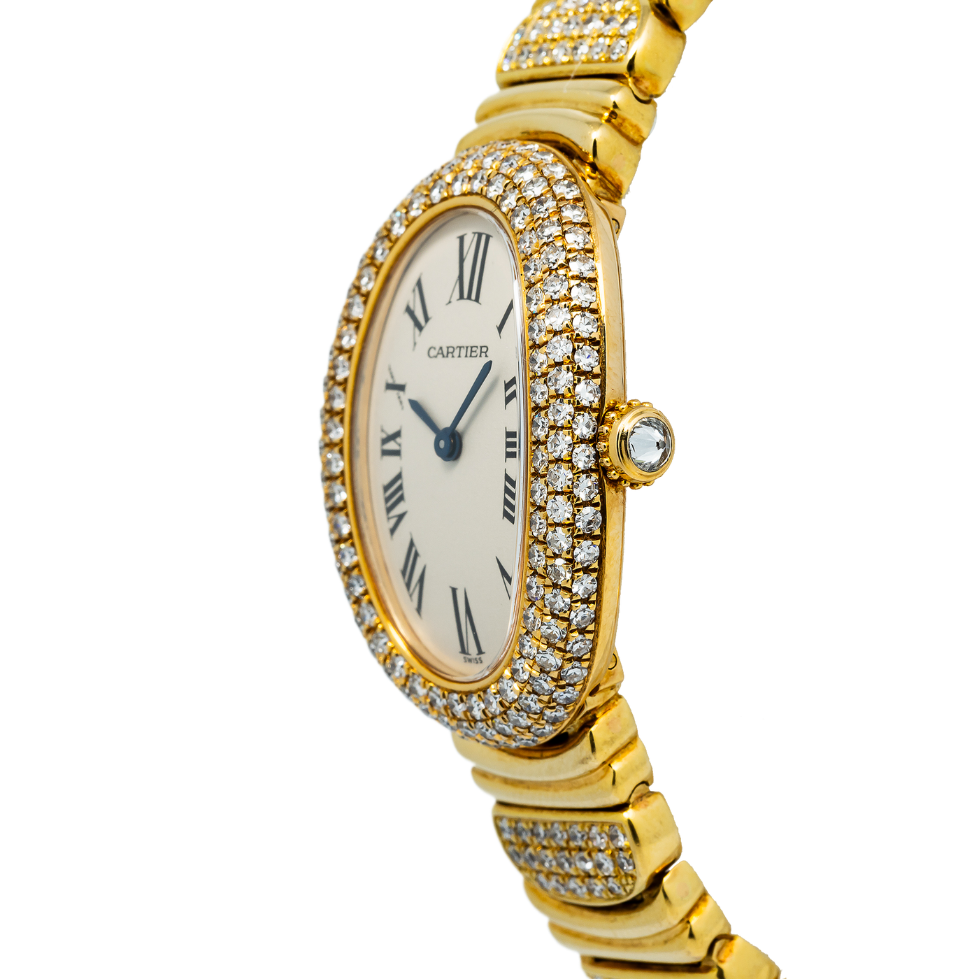 Cartier Baignoire 1954 W1506056 Aftermarket Setting 18k YG Quartz Watch 22mm Sale