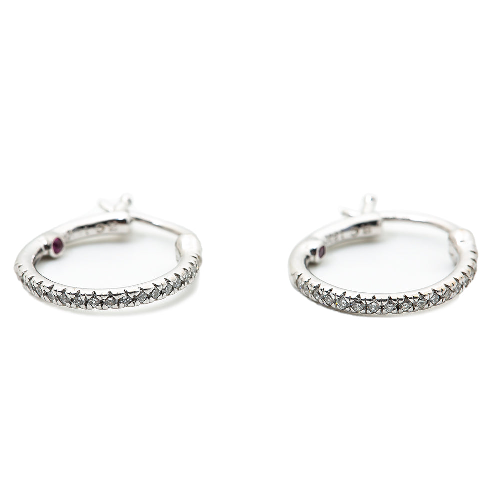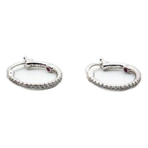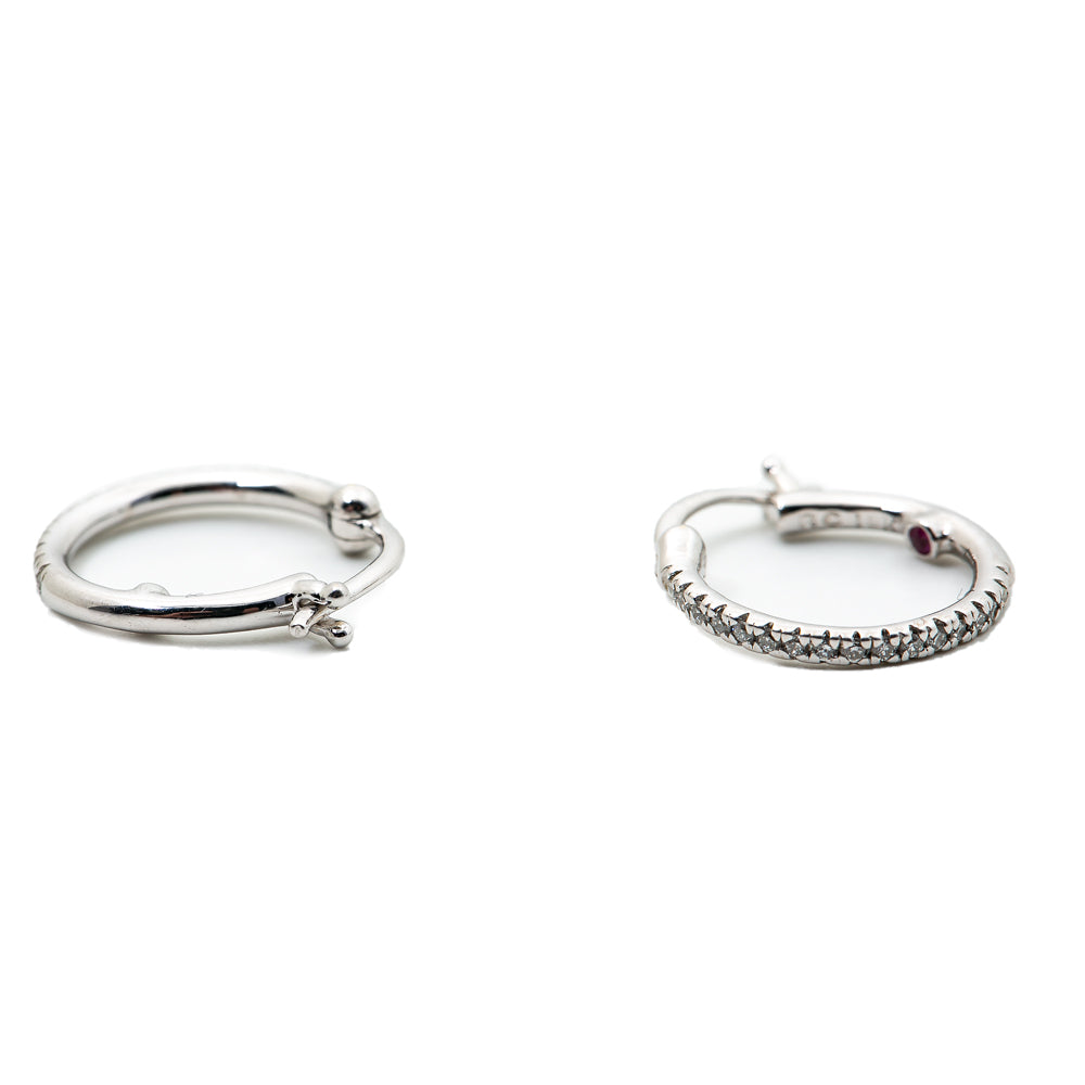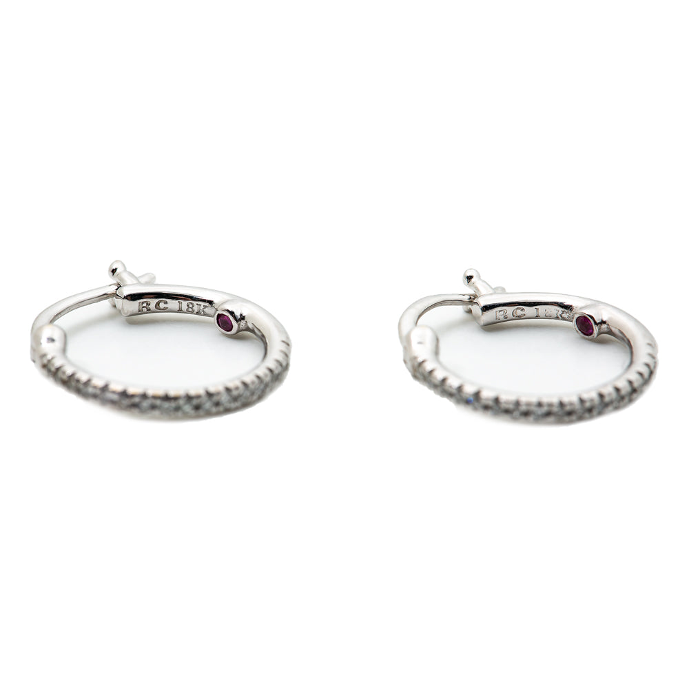 Roberto Coin 18K White Gold Hoop Earrings with Diamonds and Ruby 14mm