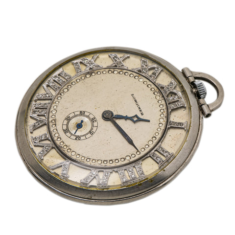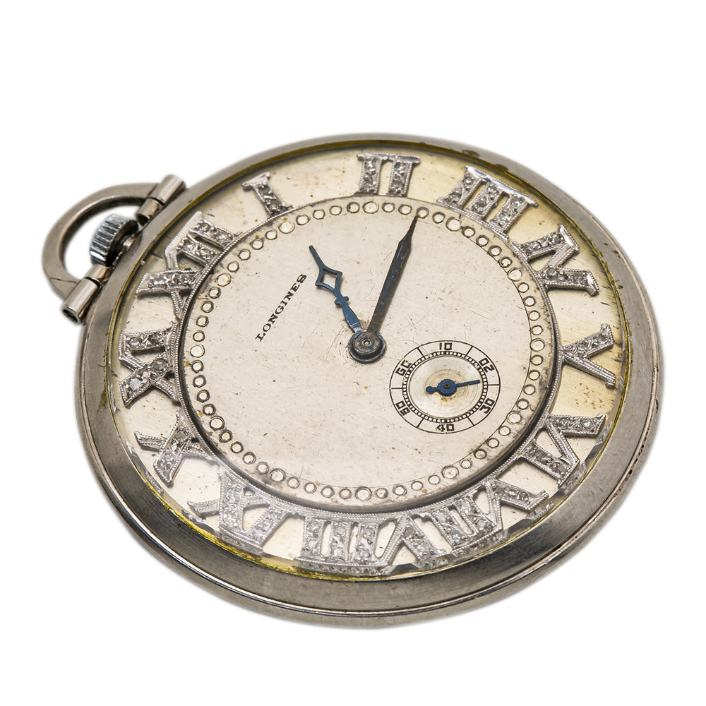 Longines Platinum 0.35CT Diamond Arabic Number 43G Gross Weight Pocket Watch 41m Sale
