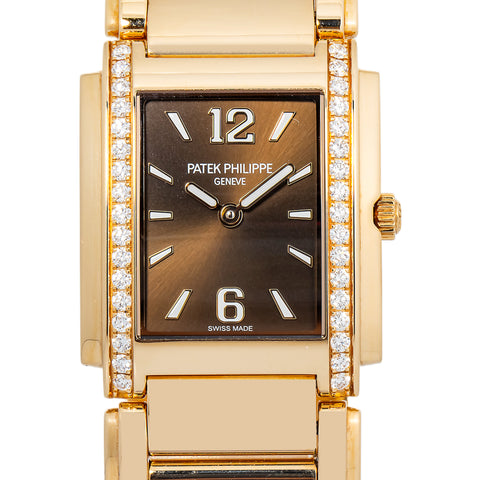 Patek Philippe Twenty~4 4910/1201R-001 Rose 2021 Complete Quartz Brown Dial 25mm