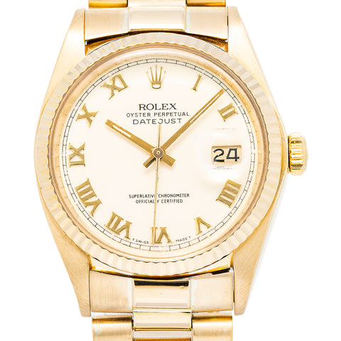 Rolex Datejust 16018 President 18k Yellow Gold Ivory Dial Automatic Unisex 36mm
