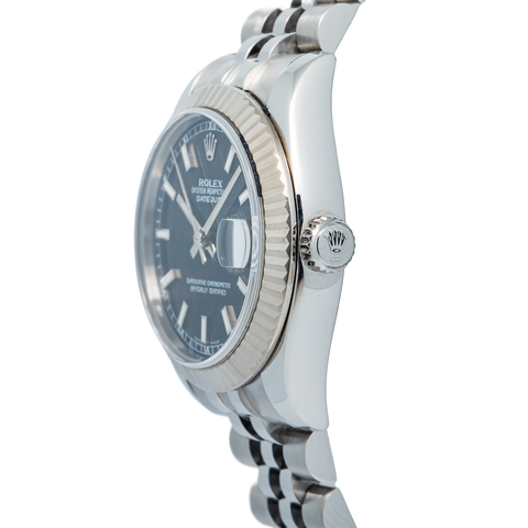| BEZEL TYPE : Fluted Bezel | BEZEL COLOR : 18k White Gold | DIAL COLOR : Black Index |
