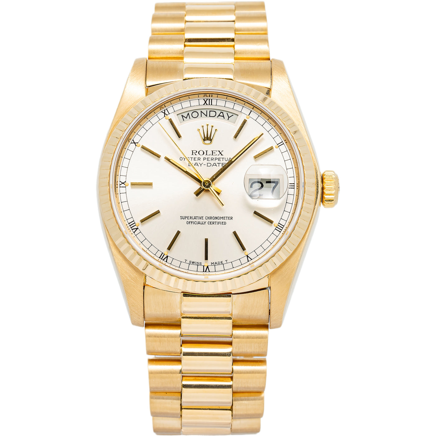 Rolex Day-Date 18038 18k YG President Silver Dial Automatic Men's Watch 36mm Sale