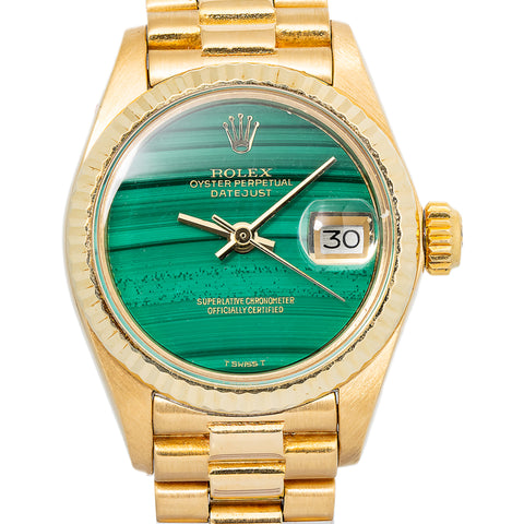 Rolex Datejust 6917 18k YG President Factory Malachite Dial Women's Watch 26mm Sale