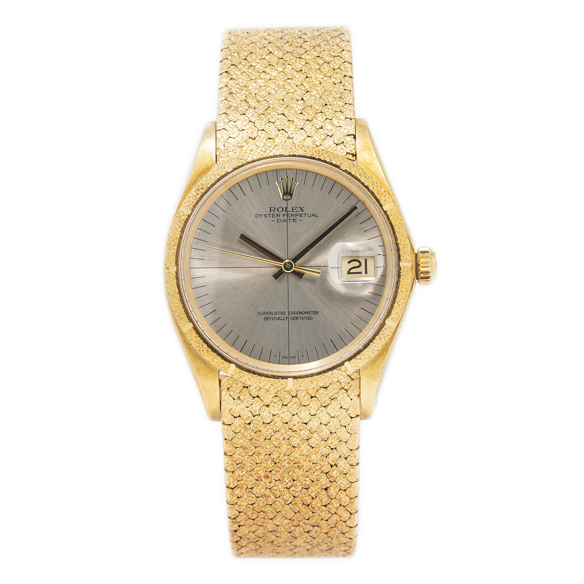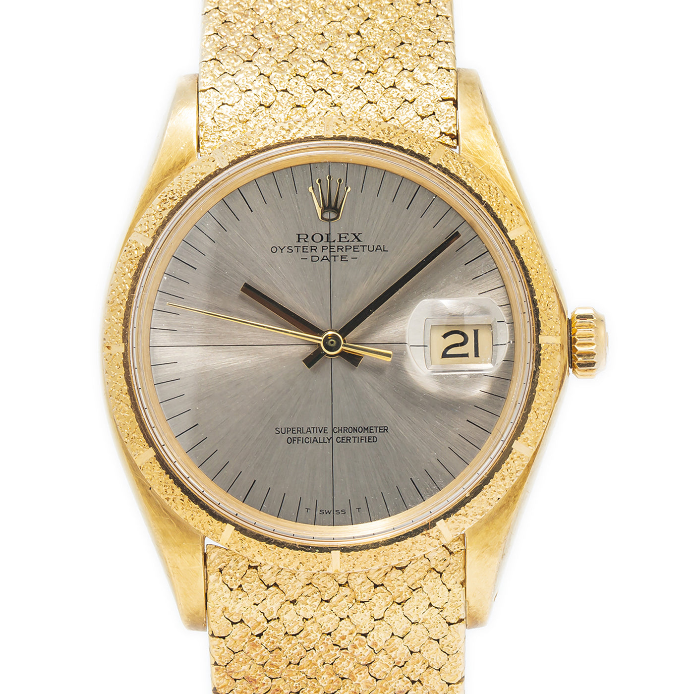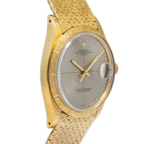 Rolex Zephyr Date 1510 18k Yellow Gold Rare Bracelet Grey Dial Auto Watch 34mm Sale