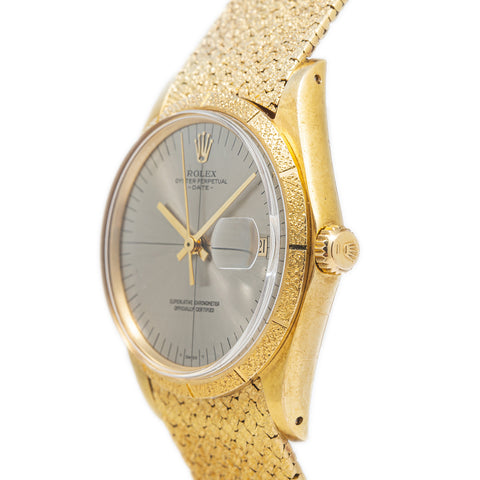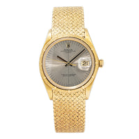 Rolex Zephyr Date 1510 18k Yellow Gold Rare Bracelet Grey Dial Auto Watch 34mm