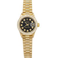 Rolex DateJust 69178 18k YG President Diamond Bezel & Dial Auto Lady Watch 26mm Sale
