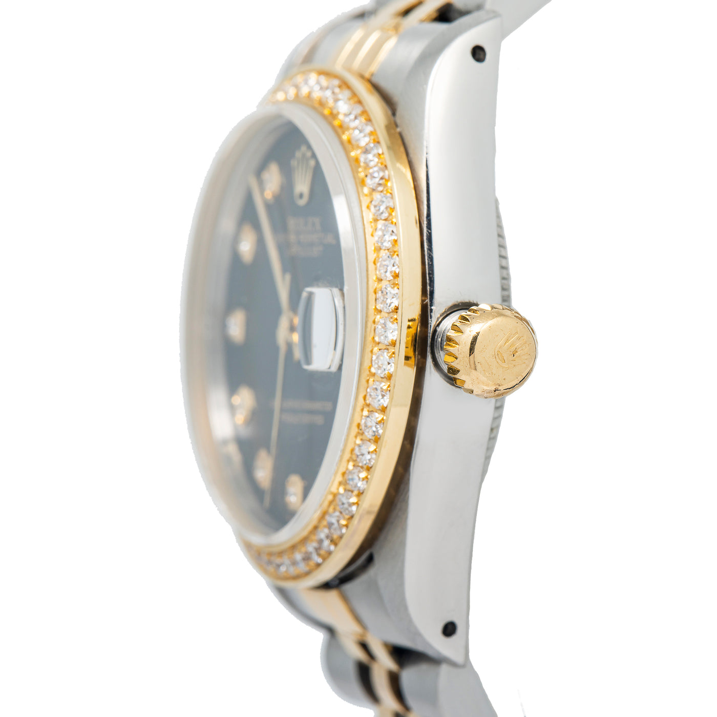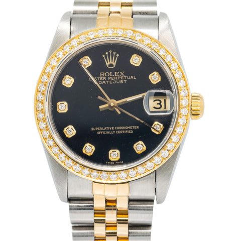 Rolex DateJust 68273 18KYG Two Tone Jubilee Black Diamond Dial Auto Midsize 31mm Sale