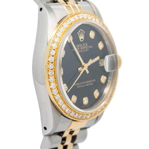 Rolex DateJust 68273 18KYG Two Tone Jubilee Black Diamond Dial Auto Midsize 31mm