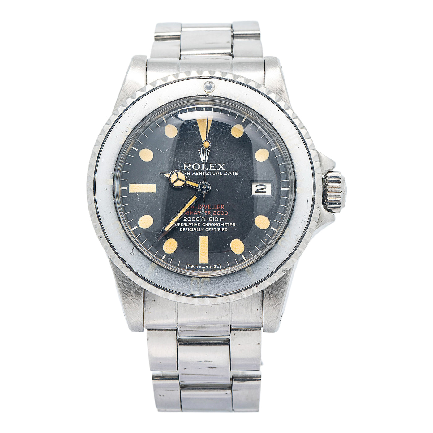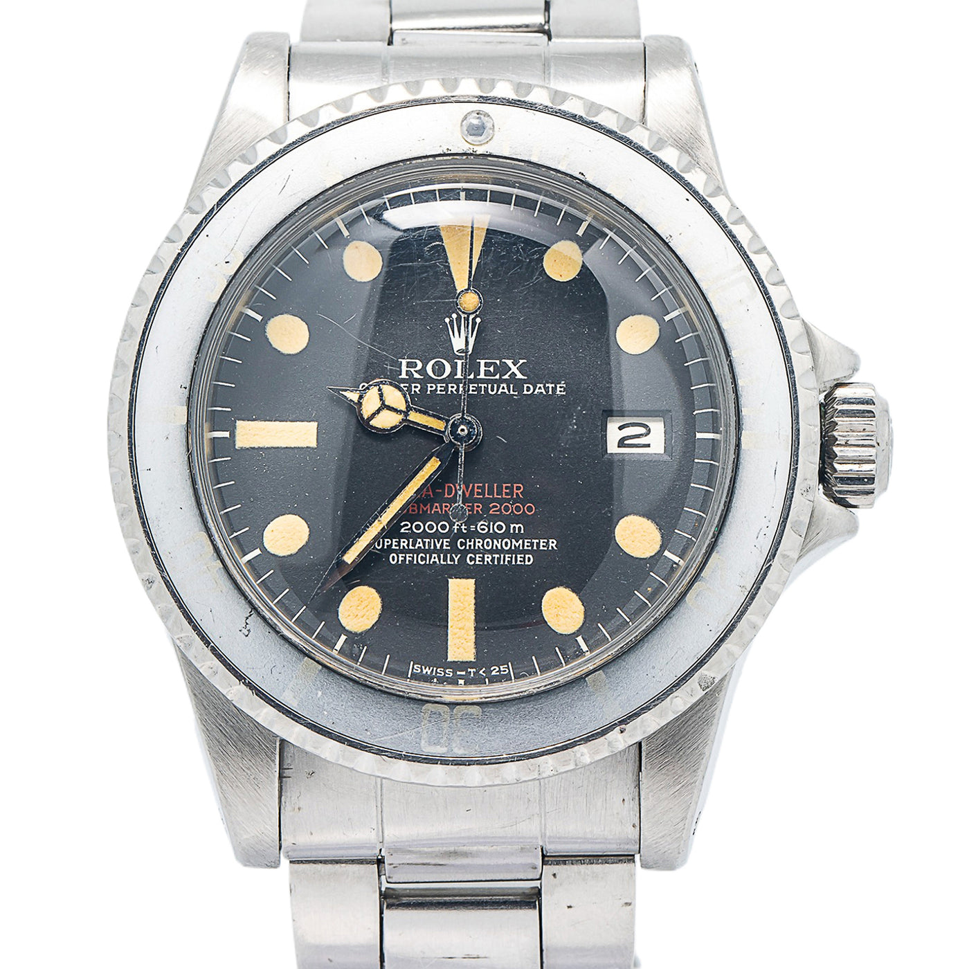 Rolex Double Red Sea-Dweller 1665 SS Vintage Patina Dial Auto Men's Watch 40mm