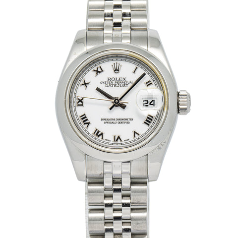 Rolex Date Just 179160 Jubilee Stainless Steel White Dial Auto Ladies Watch26mm