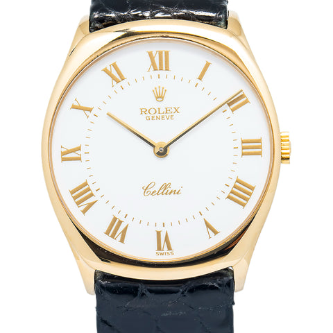 Rolex Cellini 4133 18k Yellow Gold White Dial Manual Winding Unisex Watch 32mm