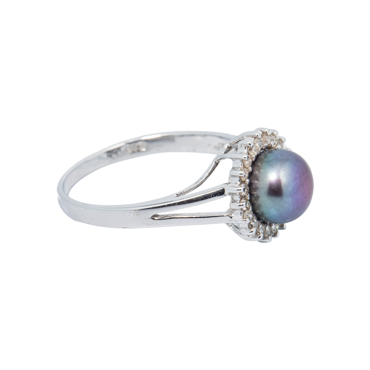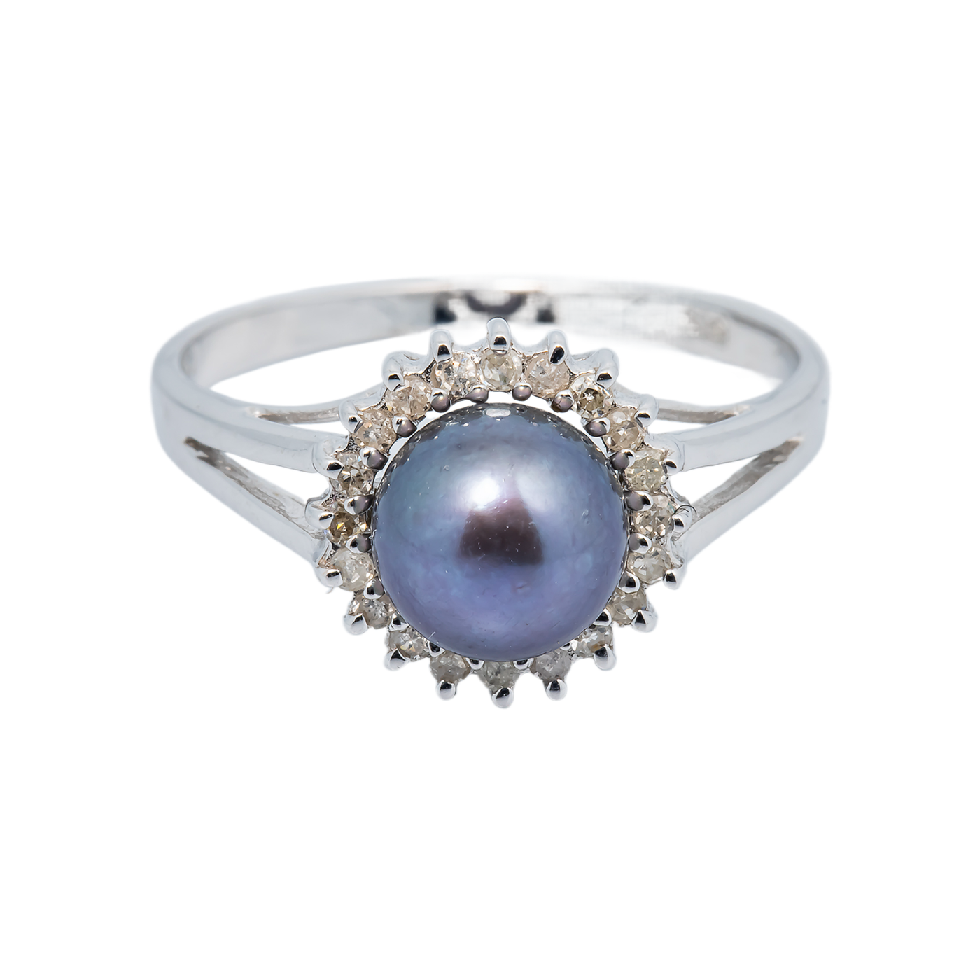 18k White Gold Black Pearl Diamond Ring ~0.25ct 2.2g 16.3mm Sale