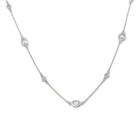 14k White Gold 1.20 Ct White Sapphire .040 Ct G VS1 Diamond By The Yard Necklace Sale
