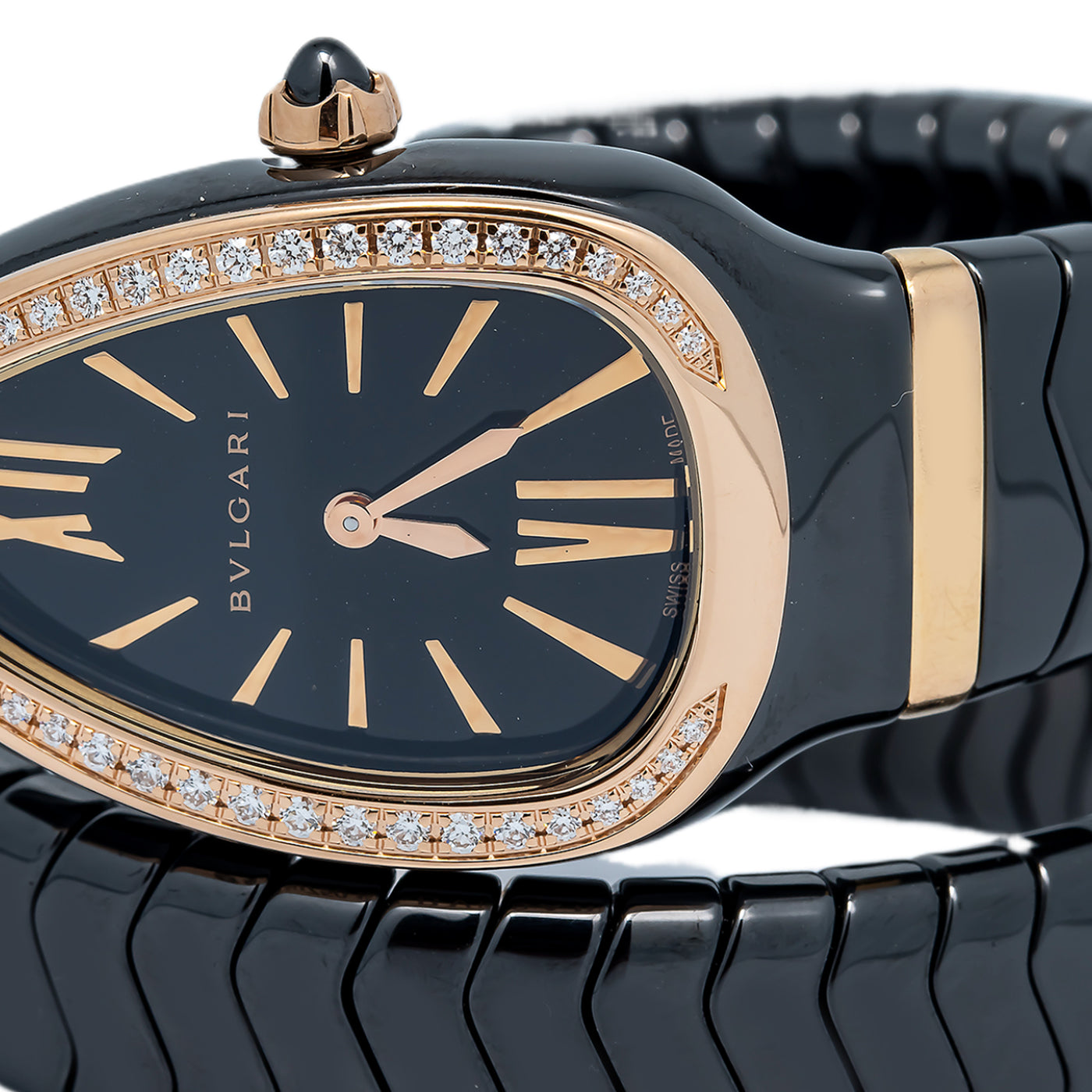 Bvlgari Serpenti SPC 35 BG 18k RG Diamond Bezel Black Dial 2018 Card Women 23mm Sale