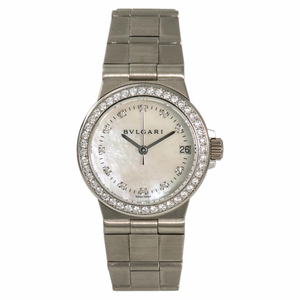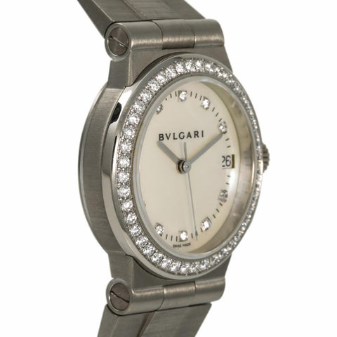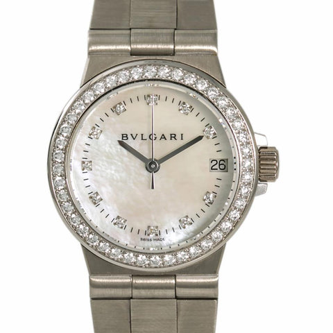 Bvlgari Diagono LCVW29G Womens Quartz 18K White Gold Watch MOP Dial 29mm