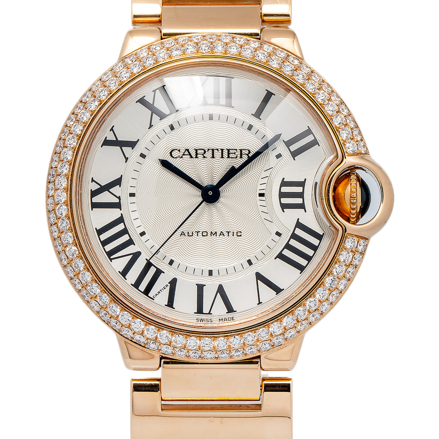 Cartier Ballon Bleu 3003 W6900456 18k RG Aftermarket Diamond Bezel Auto 36mm