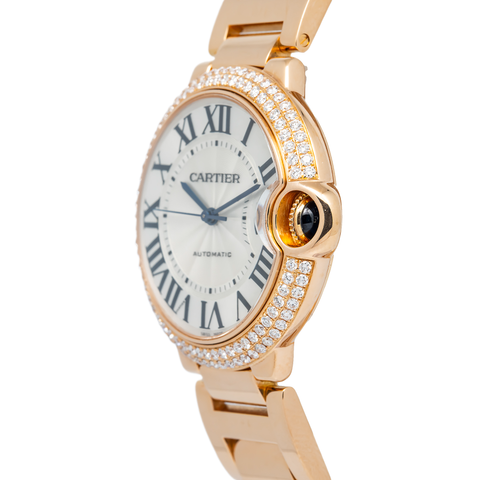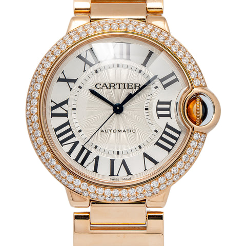 Cartier Ballon Bleu 3003 W6900456 18k RG Aftermarket Diamond Bezel Auto 36mm Sale