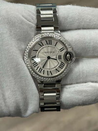 Cartier Ballon Bleu W6920084 SS Diamond Bezel Silver Dial Quartz Ladies 33mm