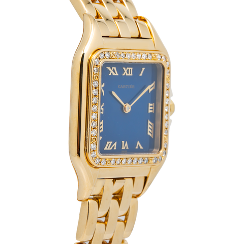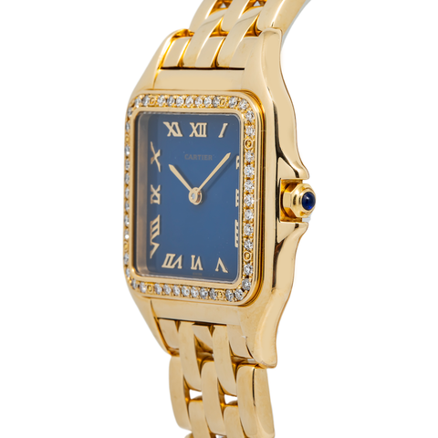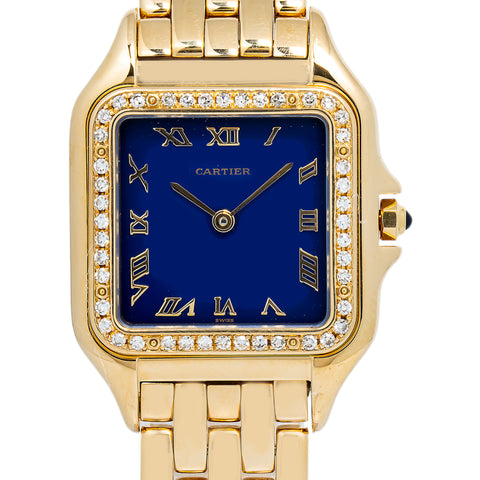 Cartier Panthere WF4036B9 Factory Diamond 18k YG Blue Dial Quartz Watch 29mm