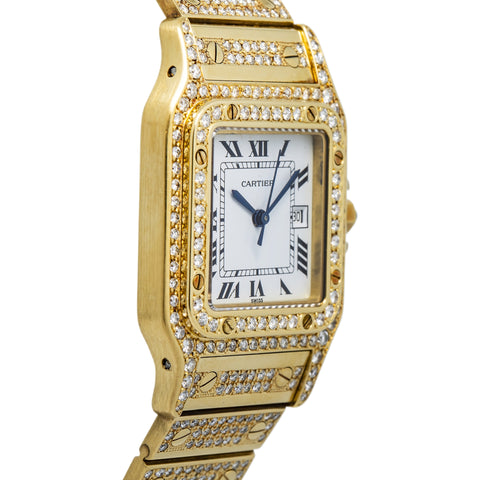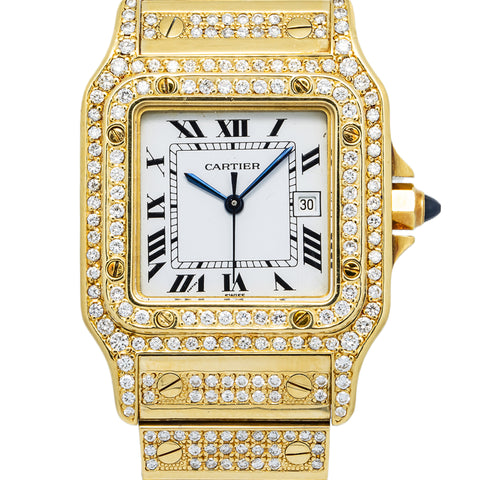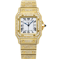 Cartier Santos Galbee Quartz Yellow Gold Diamond White Dial Women's Watch 24mm