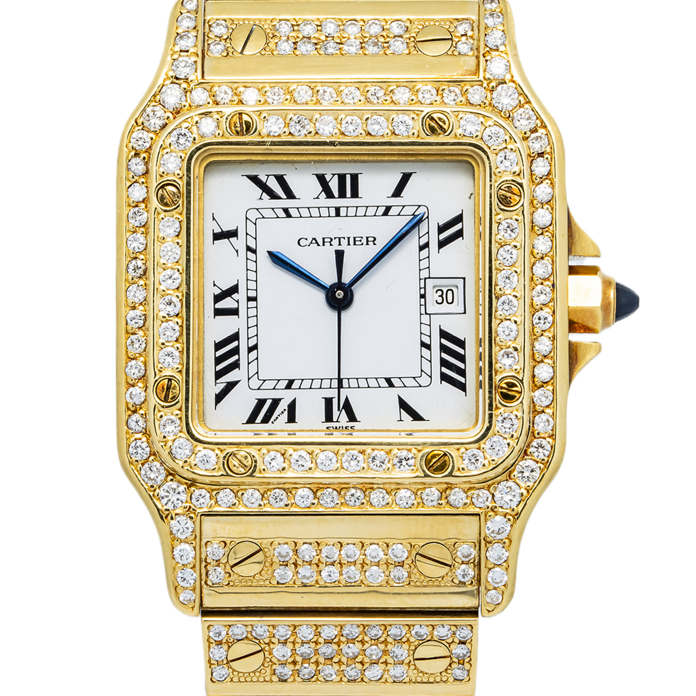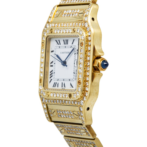 Cartier Santos Galbee Quartz Yellow Gold Diamond White Dial Women's Watch 24mm Sale