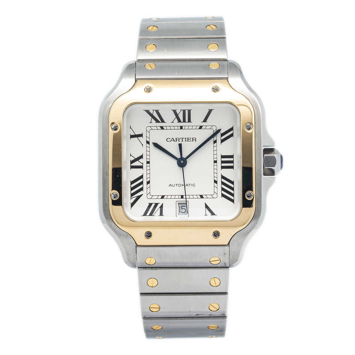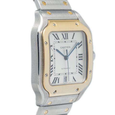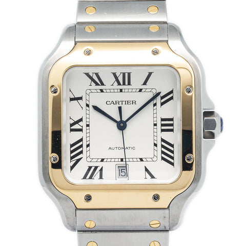 Cartier Santos W2SA0009 MINT 18k YG Two Tone White Dial Auto Men's Watch 40mm Sale