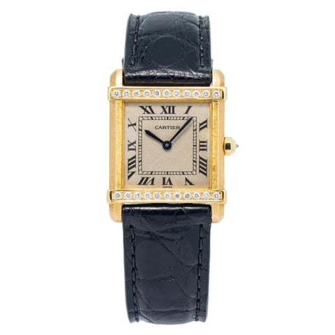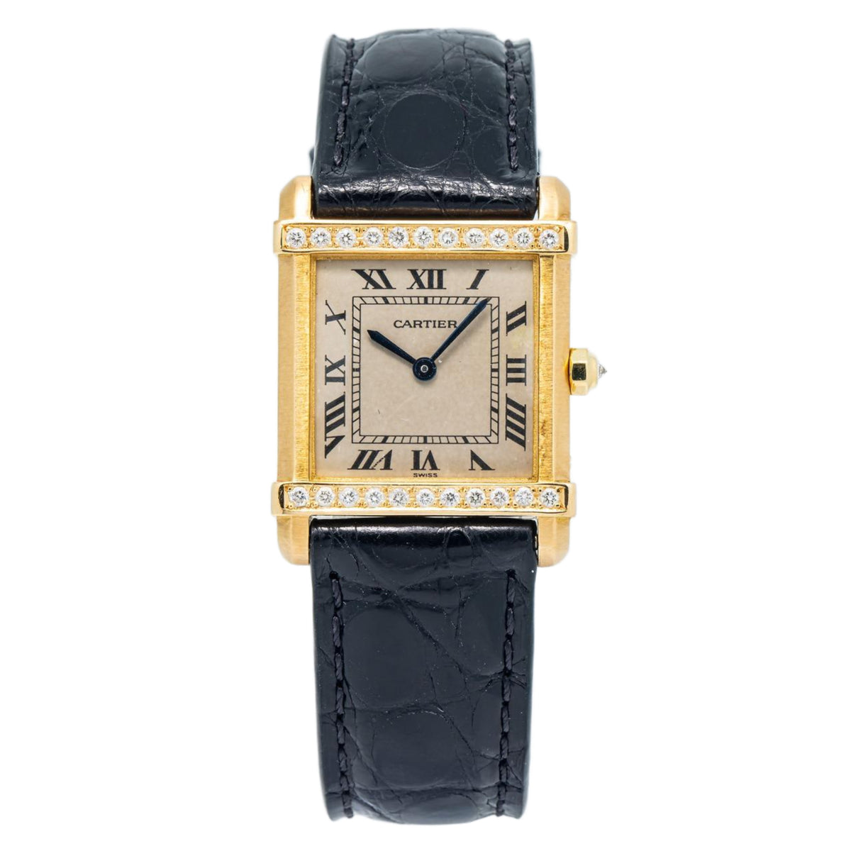 Cartier Tank Chinoise 8105 18K Yellow Gold Diamond Champagne Dial Quartz 23mm