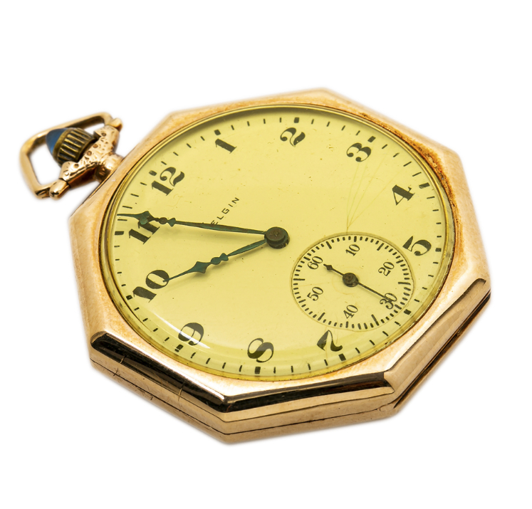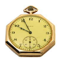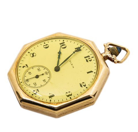 Elgin 25141181 Vintage 14K Yellow Gold Octagon Pocket Watch 43mm 54.7g in Total Sale