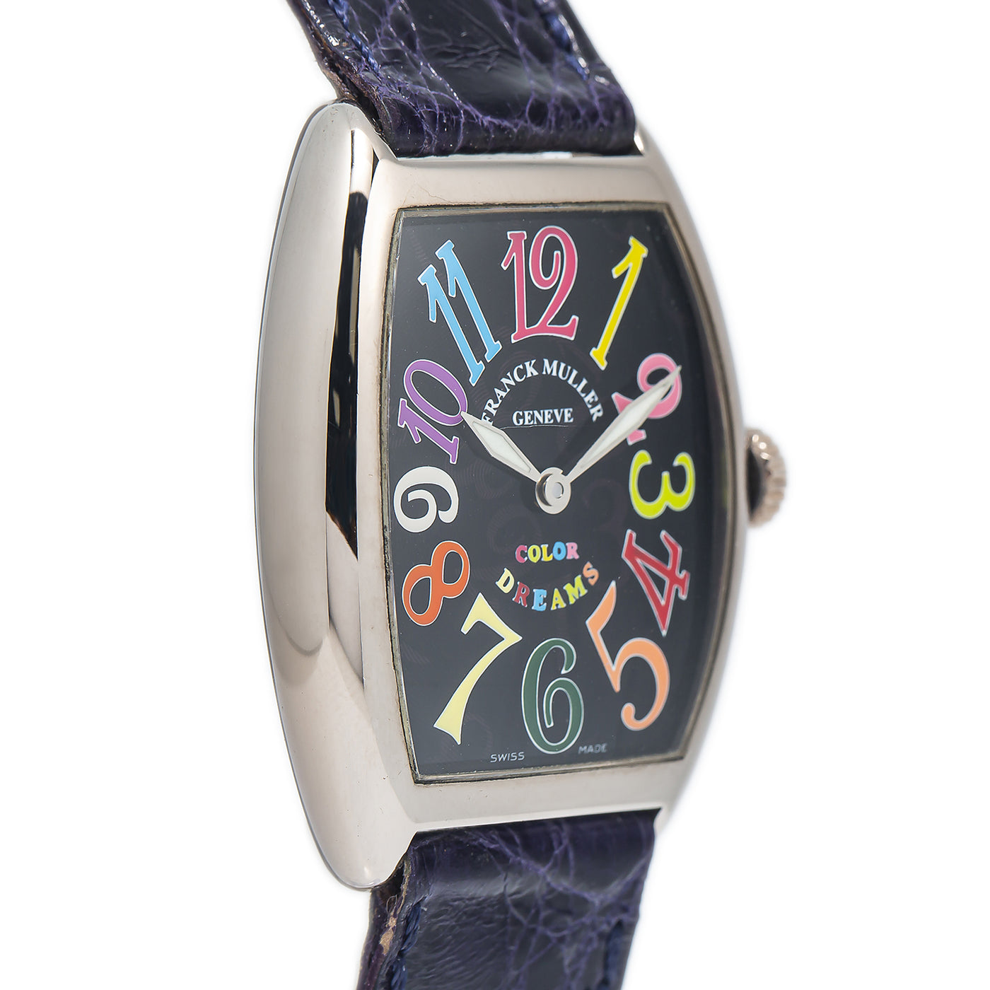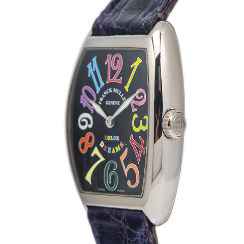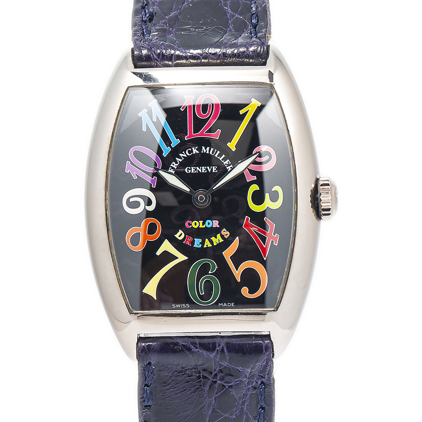 Franck Muller Color Dreams 7502QZ 18k White Gold Black Dial Ladies Watch 29mm