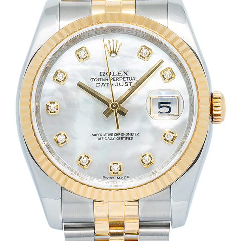 Rolex DateJust 116233NG 18k YG Two Tone Jubilee Factory Diamond MOP Dial 36mm Sale