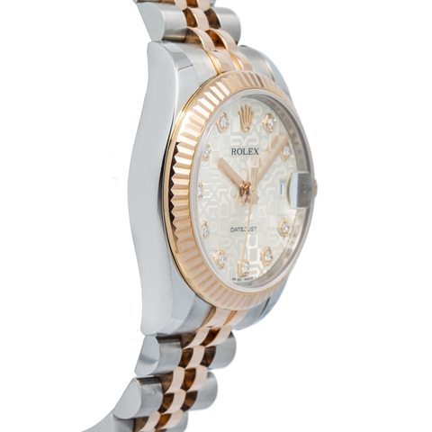 | BEZEL TYPE : Fluted | BEZEL COLOR : Rose Gold | DIAL COLOR : Silver |