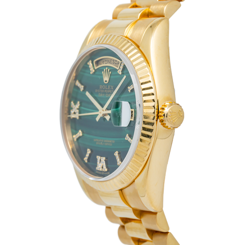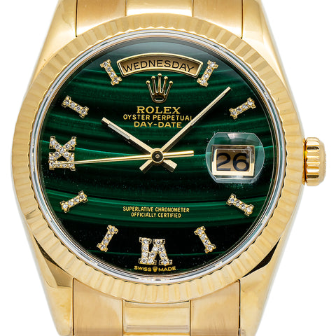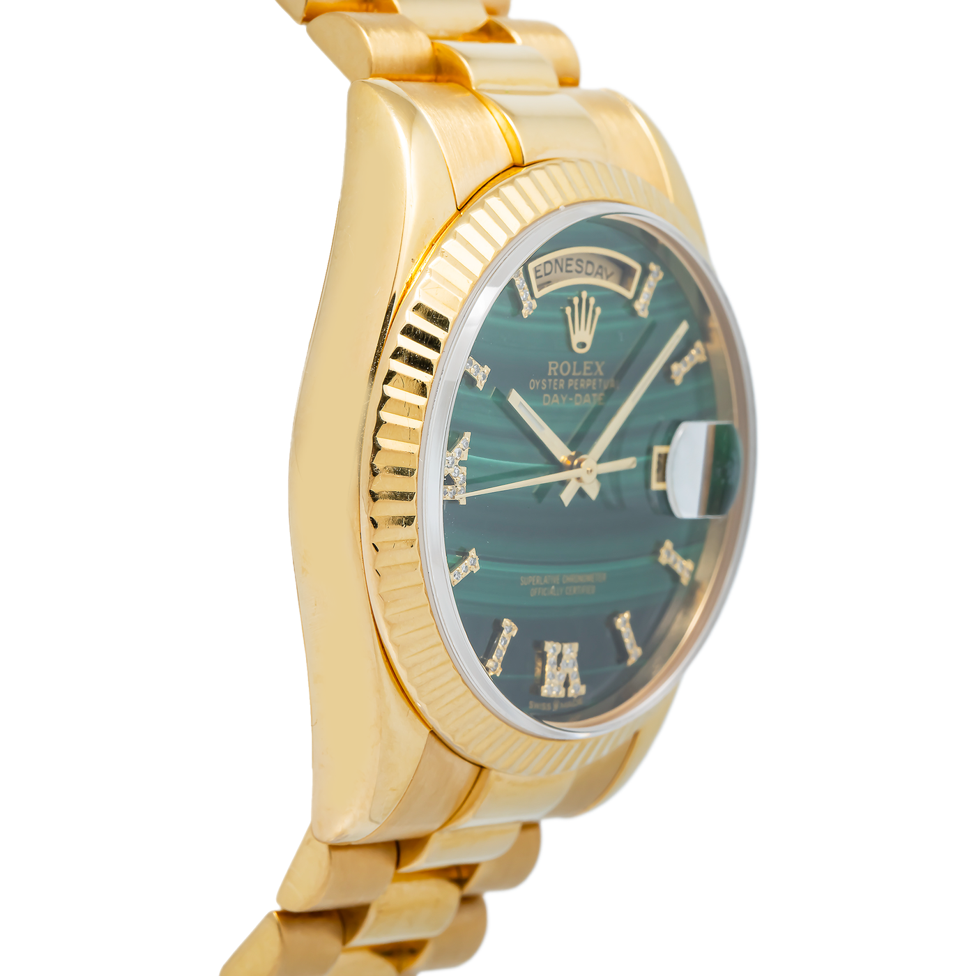 Rolex Day-Date 118238 Aftermarket Diamond 18k YG President Malachite Dial 36mm Sale