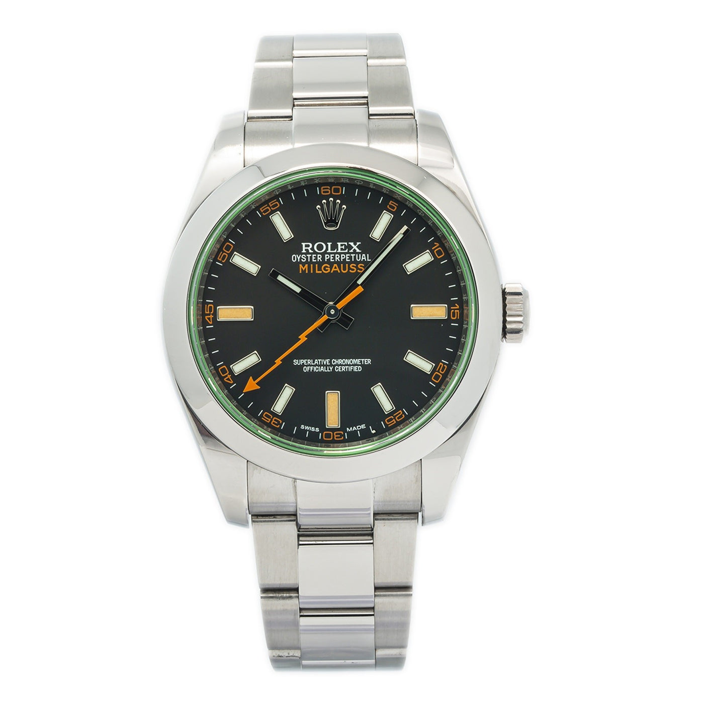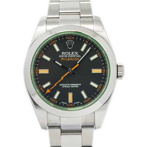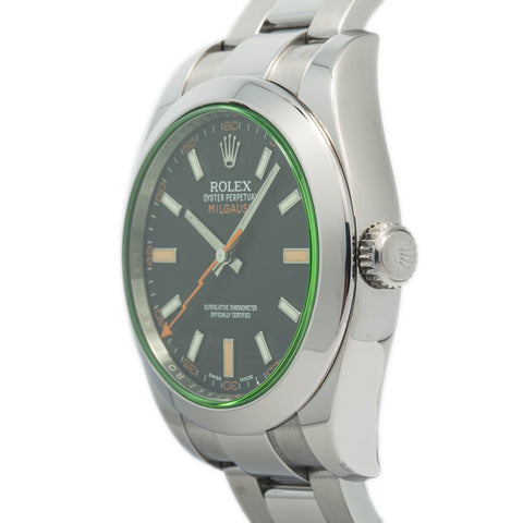 Rolex Milgauss 116400GV SS Oyster Green Crystal Black Dial Auto Men Watch 40mm Sale