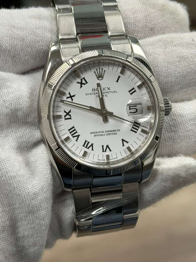 Rolex Oyster Perpetual Date 115210 Auto SS Oyster White Dial Men's Watch 34mm Sale