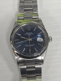 Rolex Oyster Perpetual Date 15000 Stainless Steel Blue Dial Men's Watch 34mm Sale